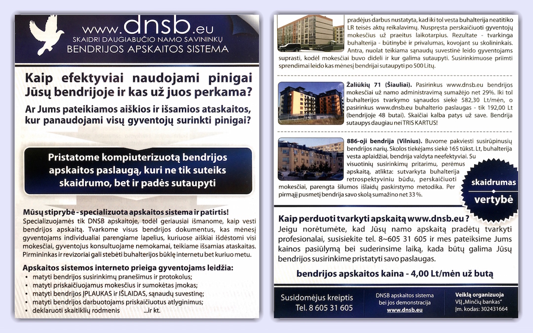 Iš atsiliepimo į ieškinį: “Nėra nustatyta, kad būčiau padarius bendrijai nuostolių. Atvirkščiai, savo pastangų dėka siekdama optimizuoti bendrijos išlaidas sutaupiau bendrijos lėšų. Nutraukus sutartis, jas koregavus ir sudarius kitas tik per 2015 metus bendrijai buvo sutaupyta 1609,58€ (daugiau…)